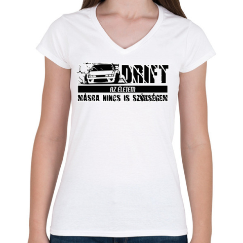 1 kép PRINTFASHION Drift az életem - Női V-nyakú póló - Fehér