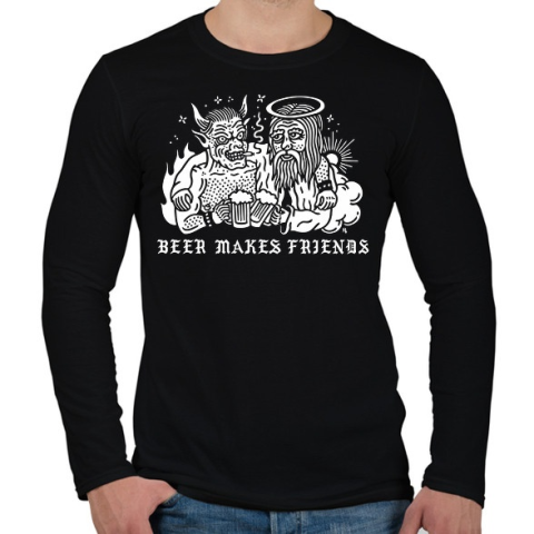 1 kép PRINTFASHION Drink beer for friends - Férfi hosszú ujjú póló - Fekete
