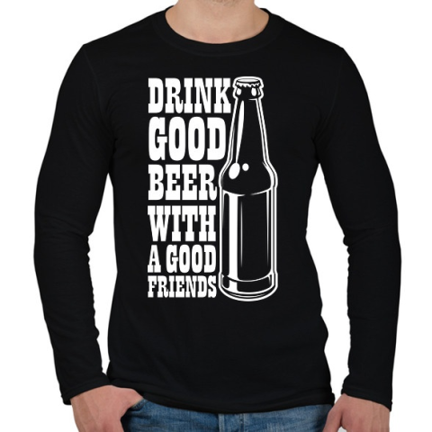 1 kép PRINTFASHION Drink Good Beer - Fehér - Férfi hosszú ujjú póló - Fekete