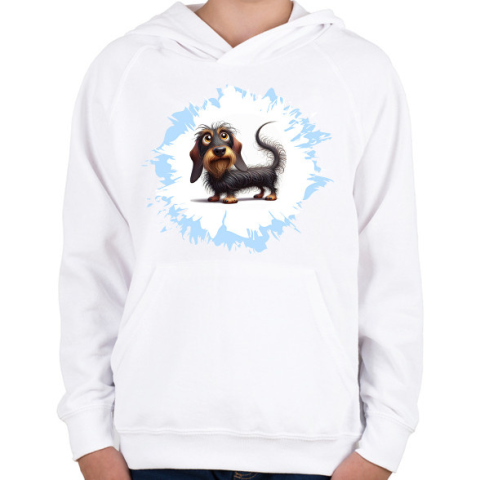1 kép PRINTFASHION Drótszőrű tacskó - Gyerek kapucnis pulóver - Fehér