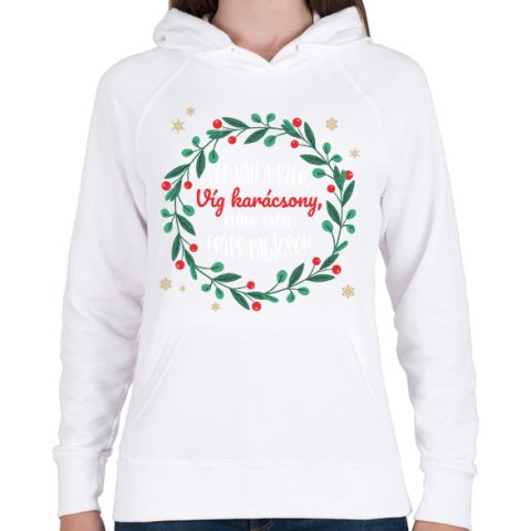 1 kép PRINTFASHION Dsida Jenő - Itt van a szép karácsony - Női kapucnis pulóver - Fehér