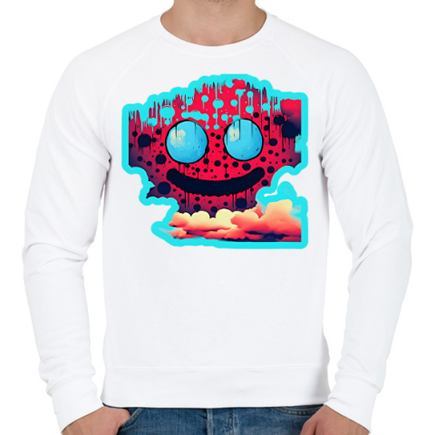 1 kép PRINTFASHION DSL Cloud Smiley #1 - Férfi pulóver - Fehér