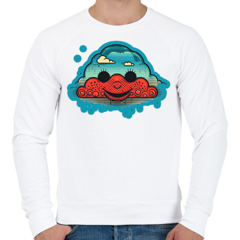 1 kép PRINTFASHION DSL Cloud Smiley #3 - Férfi pulóver - Fehér