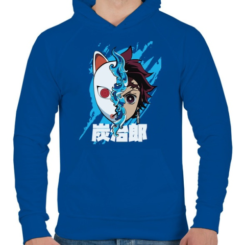 1 kép PRINTFASHION DT Inosuka mask - Férfi kapucnis pulóver - Királykék