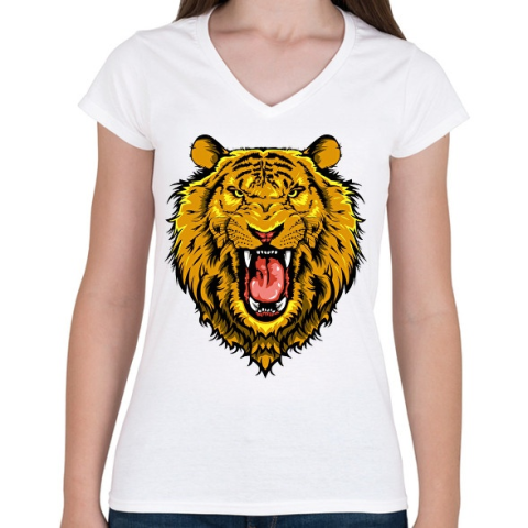 1 kép PRINTFASHION Dühös oroszlán - Női V-nyakú póló - Fehér