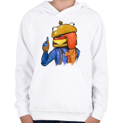 1 kép PRINTFASHION Durr Burger - Fortnite - Gyerek kapucnis pulóver - Fehér