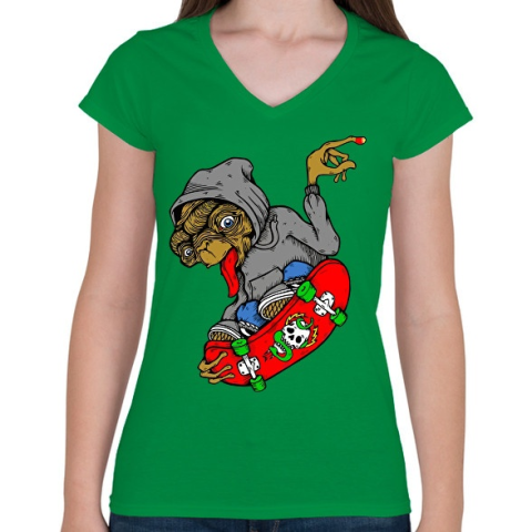 1 kép PRINTFASHION E.T. on the board - Női V-nyakú póló - Zöld
