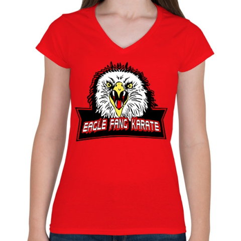 1 kép PRINTFASHION Eagle fang karate - Női V-nyakú póló - Piros