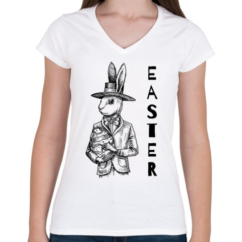 1 kép PRINTFASHION Easter - Elegáns nyúl - Női V-nyakú póló - Fehér