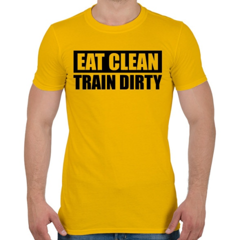 1 kép PRINTFASHION EAT CLEAN TRAIN DIRTY - Férfi póló - Sárga