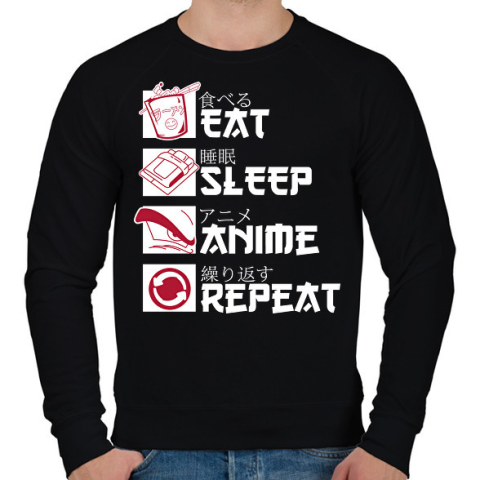 1 kép PRINTFASHION Eat, Sleep, Anime, Repeat - Férfi pulóver - Fekete
