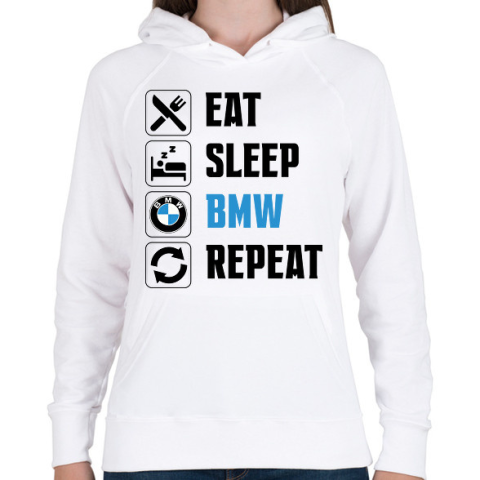 1 kép PRINTFASHION Eat Sleep Bmw - Női kapucnis pulóver - Fehér