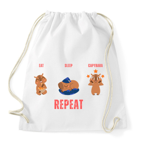 1 kép PRINTFASHION Eat sleep capybara - repeat - Sportzsák, Tornazsák - Fehér