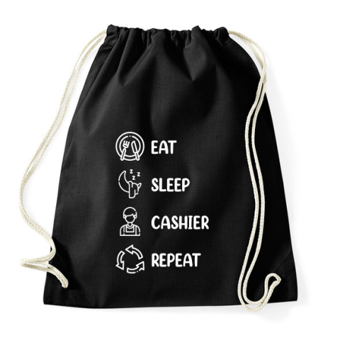 1 kép PRINTFASHION Eat, sleep, cashier, repeat - Sportzsák, Tornazsák - Fekete