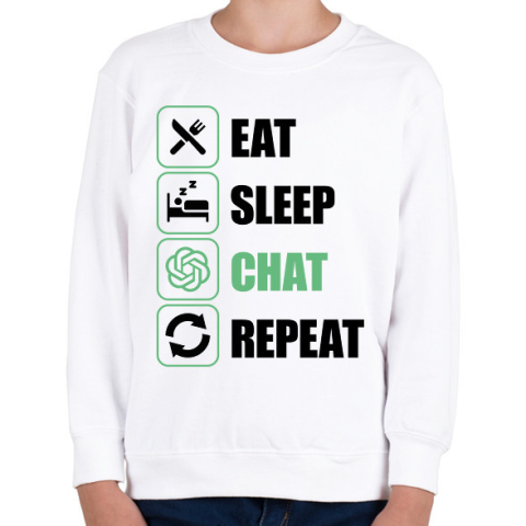 1 kép PRINTFASHION Eat, sleep, Chat, Repeat - Gyerek pulóver - Fehér
