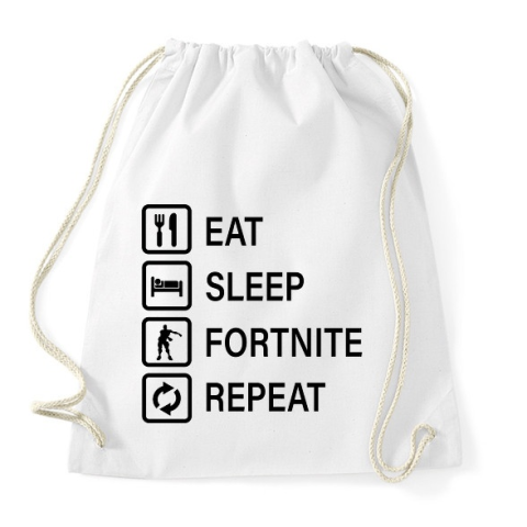 PRINTFASHION Eat Sleep Fortnite Repeat - Fekete - Sportzsák, Tornazsák - Fehér