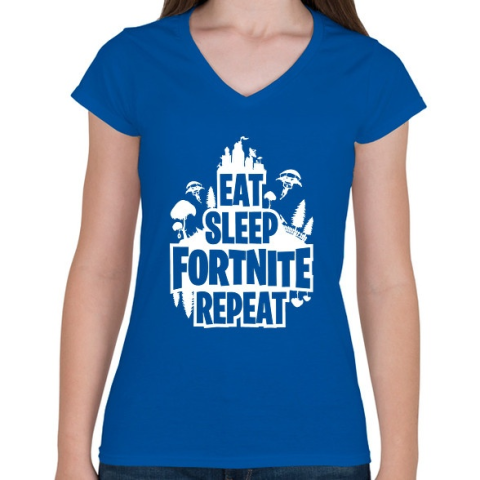 1 kép PRINTFASHION Eat Sleep Fortnite Repeat Style - Fehér - Női V-nyakú póló - Királykék