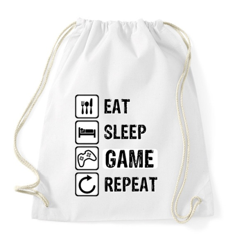 1 kép PRINTFASHION Eat, Sleep, Game, Repeat - Sportzsák, Tornazsák - Fehér
