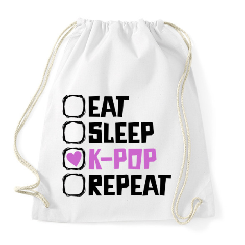 1 kép PRINTFASHION eat sleep kpop repeat - Sportzsák, Tornazsák - Fehér