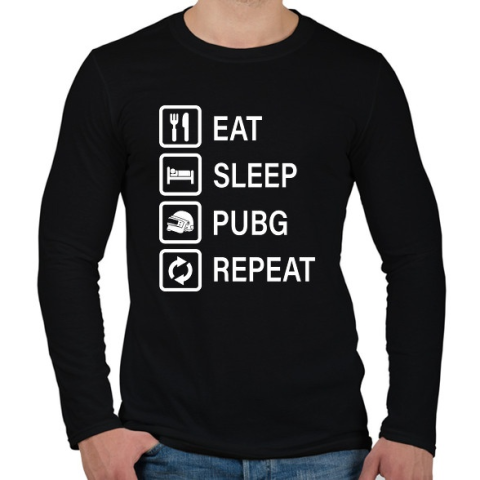 1 kép PRINTFASHION Eat Sleep PUBG Repeat - Fehér - Férfi hosszú ujjú póló - Fekete
