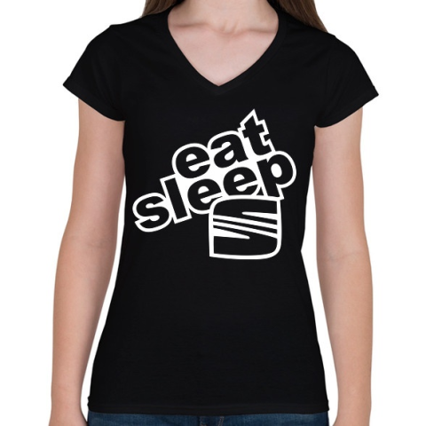 1 kép PRINTFASHION Eat Sleep Seat - Női V-nyakú póló - Fekete