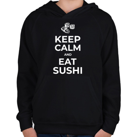 1 kép PRINTFASHION EAT SUSHI - Gyerek kapucnis pulóver - Fekete