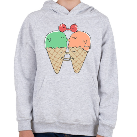 1 kép PRINTFASHION Édes csók - fagyi - Gyerek kapucnis pulóver - Sport szürke