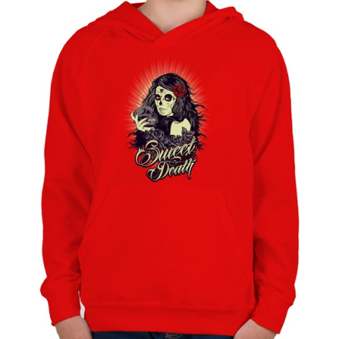 1 kép PRINTFASHION Édes halál - Gyerek kapucnis pulóver - Piros