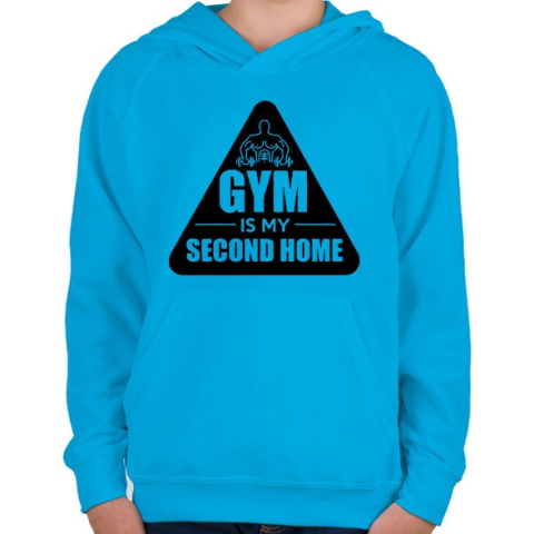 1 kép PRINTFASHION Edzőterem a második otthonom - Gyerek kapucnis pulóver - Azúrkék