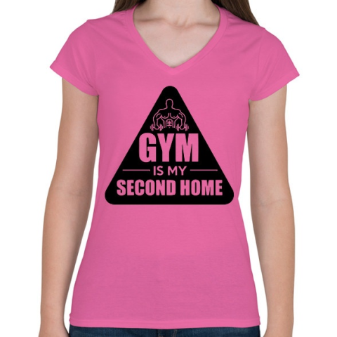 1 kép PRINTFASHION Edzőterem a második otthonom - Női V-nyakú póló - Rózsaszín