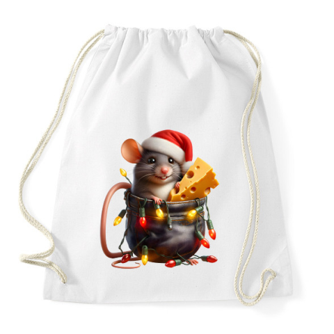 1 kép PRINTFASHION Egér zsebben - vicces karácsonyi kisegér mikulás sapkában - Sportzsák, Tornazsák - Fehér