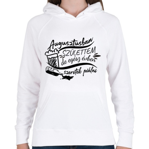1 kép PRINTFASHION Egész évben szeretek piálni - Augusztus - Női kapucnis pulóver - Fehér