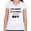 1 kép PRINTFASHION Egy erős augusztusi pasihoz fogok hozzá menni - Női V-nyakú póló - Fehér