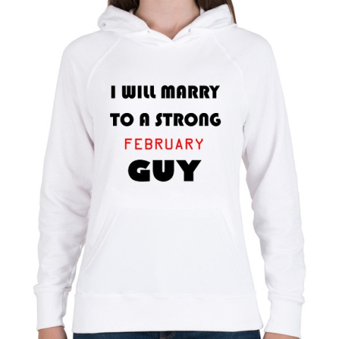 1 kép PRINTFASHION Egy erős februári pasihoz fogok hozzá menni - Női kapucnis pulóver - Fehér