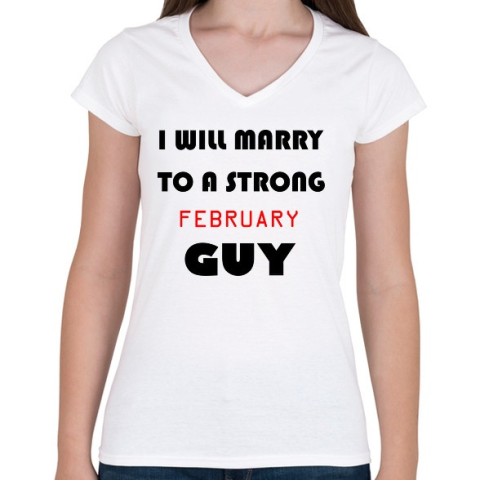 1 kép PRINTFASHION Egy erős februári pasihoz fogok hozzá menni - Női V-nyakú póló - Fehér