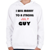 1 kép PRINTFASHION Egy erős júliusi pasihoz fogok hozzá menni - Gyerek kapucnis pulóver - Fehér