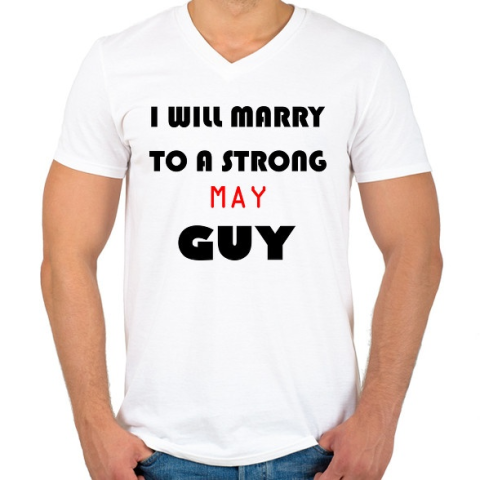 1 kép PRINTFASHION Egy erős májusi pasihoz fogok hozzá menni - Férfi V-nyakú póló - Fehér