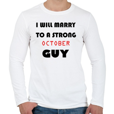1 kép PRINTFASHION Egy erős októberi pasihoz fogok hozzá menni - Férfi hosszú ujjú póló - Fehér