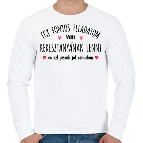 1 kép PRINTFASHION Egy fontos feladatom van - keresztanya - Férfi pulóver - Fehér