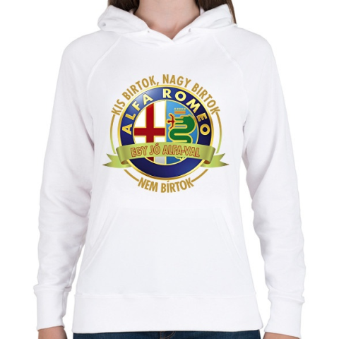1 kép PRINTFASHION Egy jó ALFA-val nem bírtok - Női kapucnis pulóver - Fehér