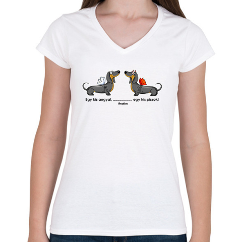 1 kép PRINTFASHION "Egy kis angyal ... egy kis piszok" - Női V-nyakú póló - Fehér