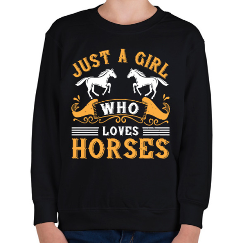 1 kép PRINTFASHION Egy lány aki szereti a lovakat - Gyerek pulóver - Fekete
