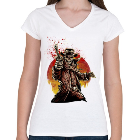 1 kép PRINTFASHION Egy lövés - Női V-nyakú póló - Fehér
