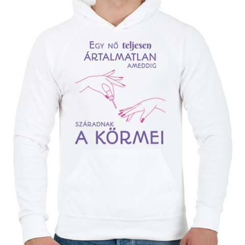 1 kép PRINTFASHION Egy nő teljesen ártalmatlan ameddig... - Férfi kapucnis pulóver - Fehér