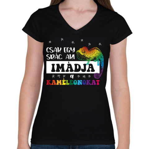 1 kép PRINTFASHION Egy srác - Kaméleon - Női V-nyakú póló - Fekete