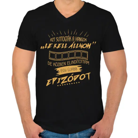 1 kép PRINTFASHION Egy újabb epizód - Férfi V-nyakú póló - Fekete