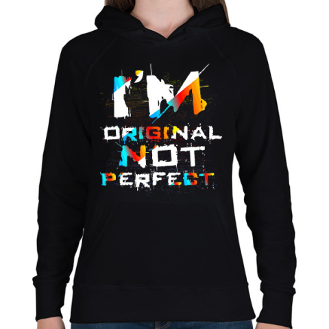 1 kép PRINTFASHION Egyedi vagyok, nem tökéletes - Női kapucnis pulóver - Fekete