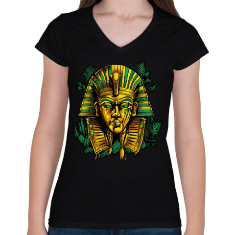 1 kép PRINTFASHION Egyiptomi fáraó - Női V-nyakú póló - Fekete