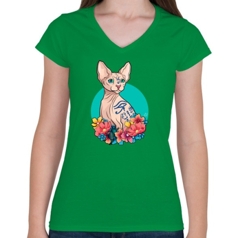 1 kép PRINTFASHION Egyiptomi macska - Női V-nyakú póló - Zöld