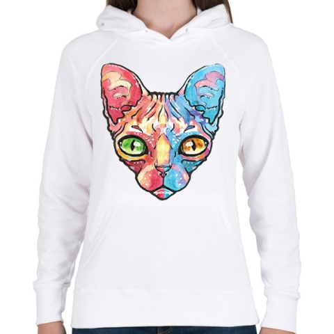 1 kép PRINTFASHION Egyiptomi macska vízfesték - Női kapucnis pulóver - Fehér